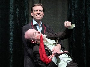 Sie sind als geschniegelte und gestriegelte, pomadierte und gepuderte Moritatensänger mit Akkordeon und Gitarre sowie in zahlreichen weiteren Rollen die eigentlichen Stars des Abends;